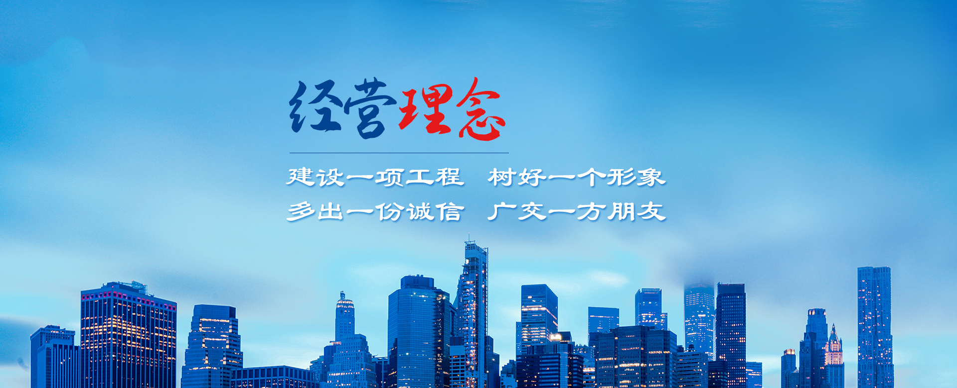 公司以建造合格建筑產(chǎn)品、助力國家建設(shè)為使命,以構(gòu)建幸福企業(yè)為愿景。公司深知助力國家建設(shè)為使命所擔(dān)負(fù)的責(zé)任,故以“如履薄冰、如臨深淵、高調(diào)精細(xì)做事、低調(diào)謙虛做人”為工作理念,建立了完善的管理制度和質(zhì)量保障體系,以人為本,構(gòu)建和諧環(huán)境。公司牢固樹立安全意識(shí)、文明意識(shí)、質(zhì)量意識(shí)、環(huán)境意識(shí)和精品意識(shí)。在公司質(zhì)量管理過程中貫徹“雙百”方針:即工程合格率100%,客戶滿意率100%。以“建設(shè)一項(xiàng)工程,樹好一個(gè)形象,多出一份誠信,廣交一方朋友”為公司經(jīng)營理念。